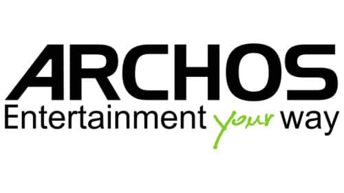 Le logo Archos est composé du nom même de la marque. Il est écrit en majuscules et en noir. Le slogan « Entertainment your way », de son côté, est écrit en noir sauf le mot « your » qui est en vert.